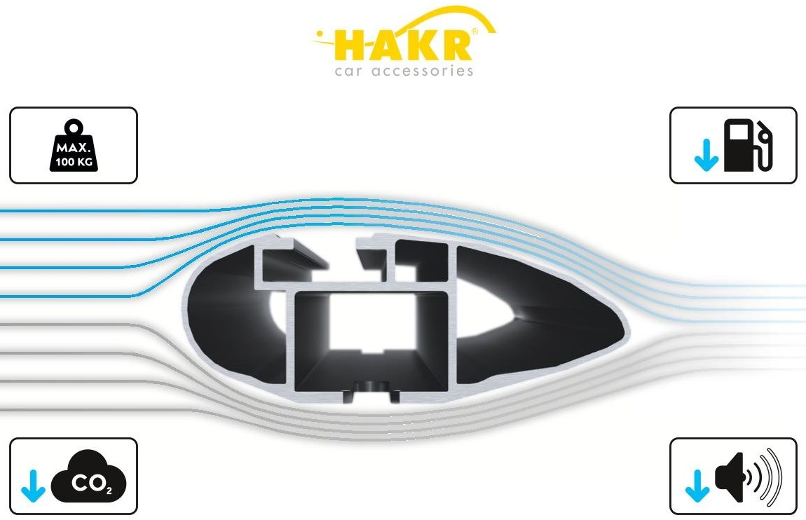 Aerodynamika příčníků HAKR WingProfile je na špičkové úrovni. Lepší proudění vzduchu snižuje míru aerodynamického hluku a odpor vzduchu.