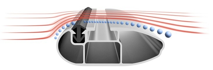 Německý výrobce ATERA přináší na trh unikátní řešení horní strany hliníkových tyčí a to s maximálním ohledem na aerodynamickýmé vlastnostmi. Na náběžné hraně tyčí je trvale instalována gumová lišta, která jednak nadzvedává proud vzduchu tak, aby proudil nad hlavní T-drážkou a nevytvářel nežádoucí zvukové efekty a zároveň slouží jako dosedací plocha pro střešní boxy, příp. jiné instalované příslušenství.